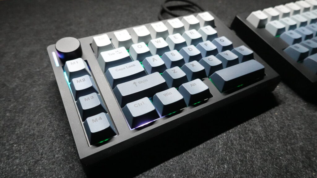 ライティングはキースイッチ部分以外にダイヤル部分にもありますが、キーキャップ部分とあわせても二箇所のみで側面などに派手すぎるライティングはありません。